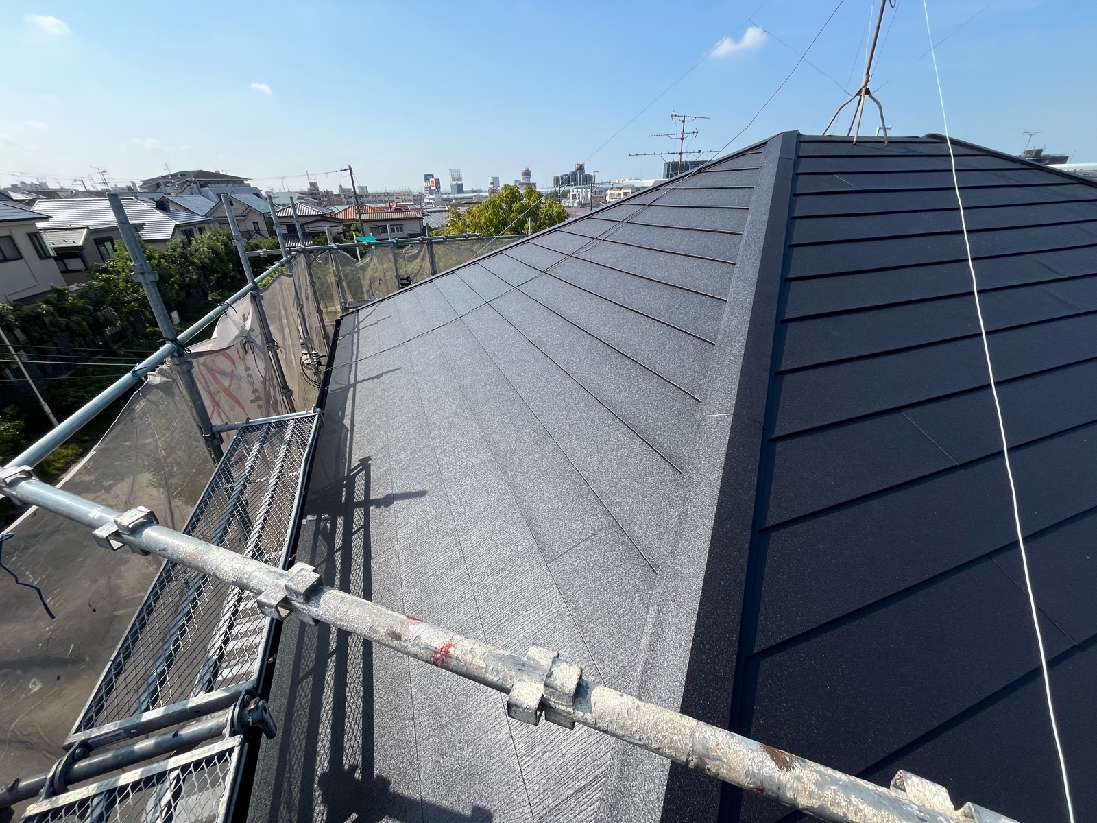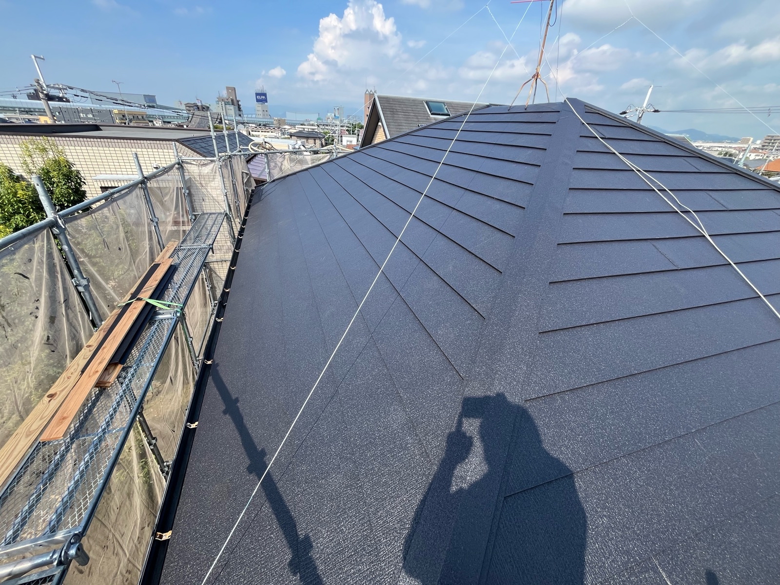 軽量なガルバリウム鋼板などの屋根材を葺いていきます。