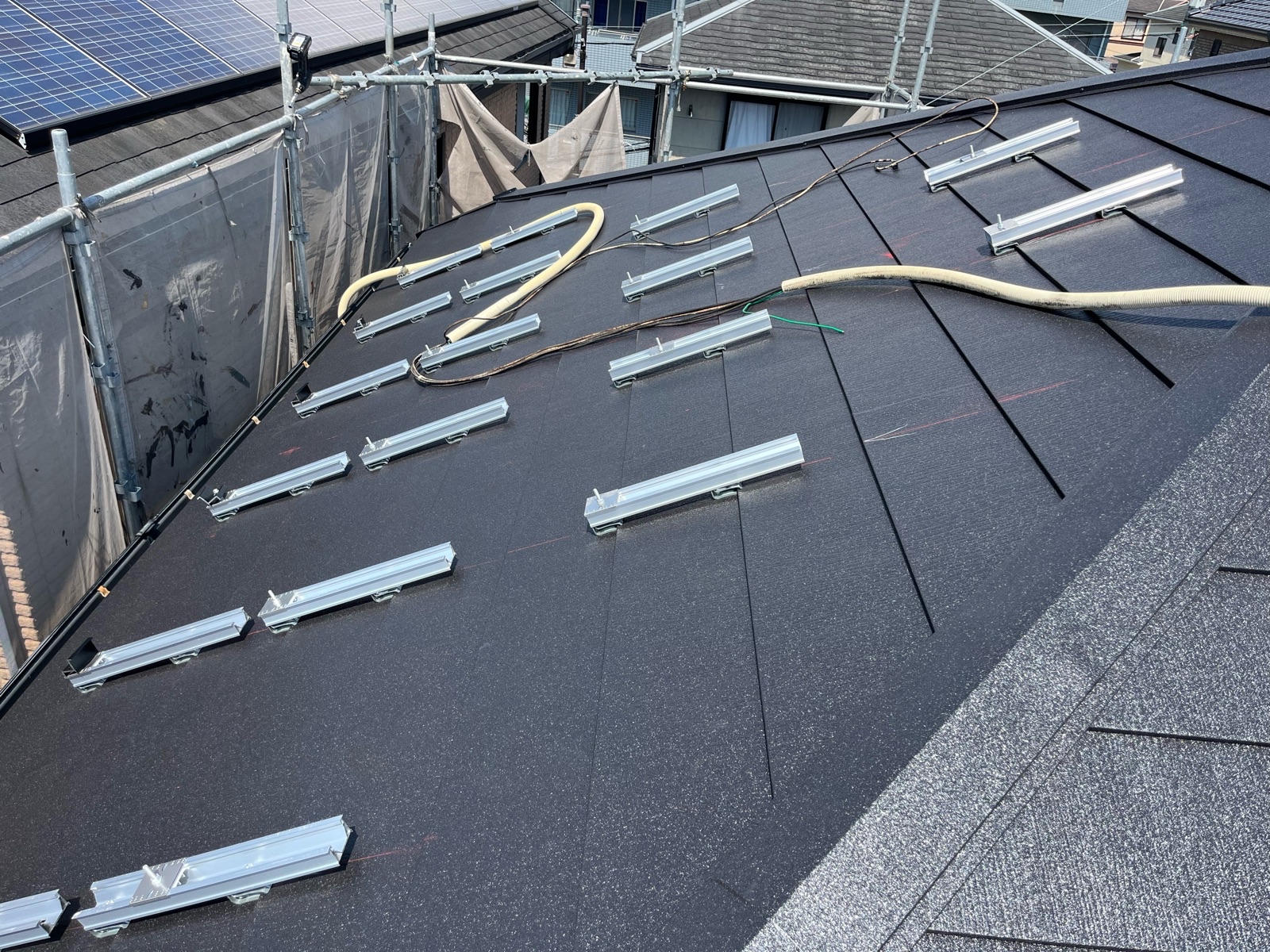 新しい屋根材の上に、新しい架台や再利用可能な架台を、